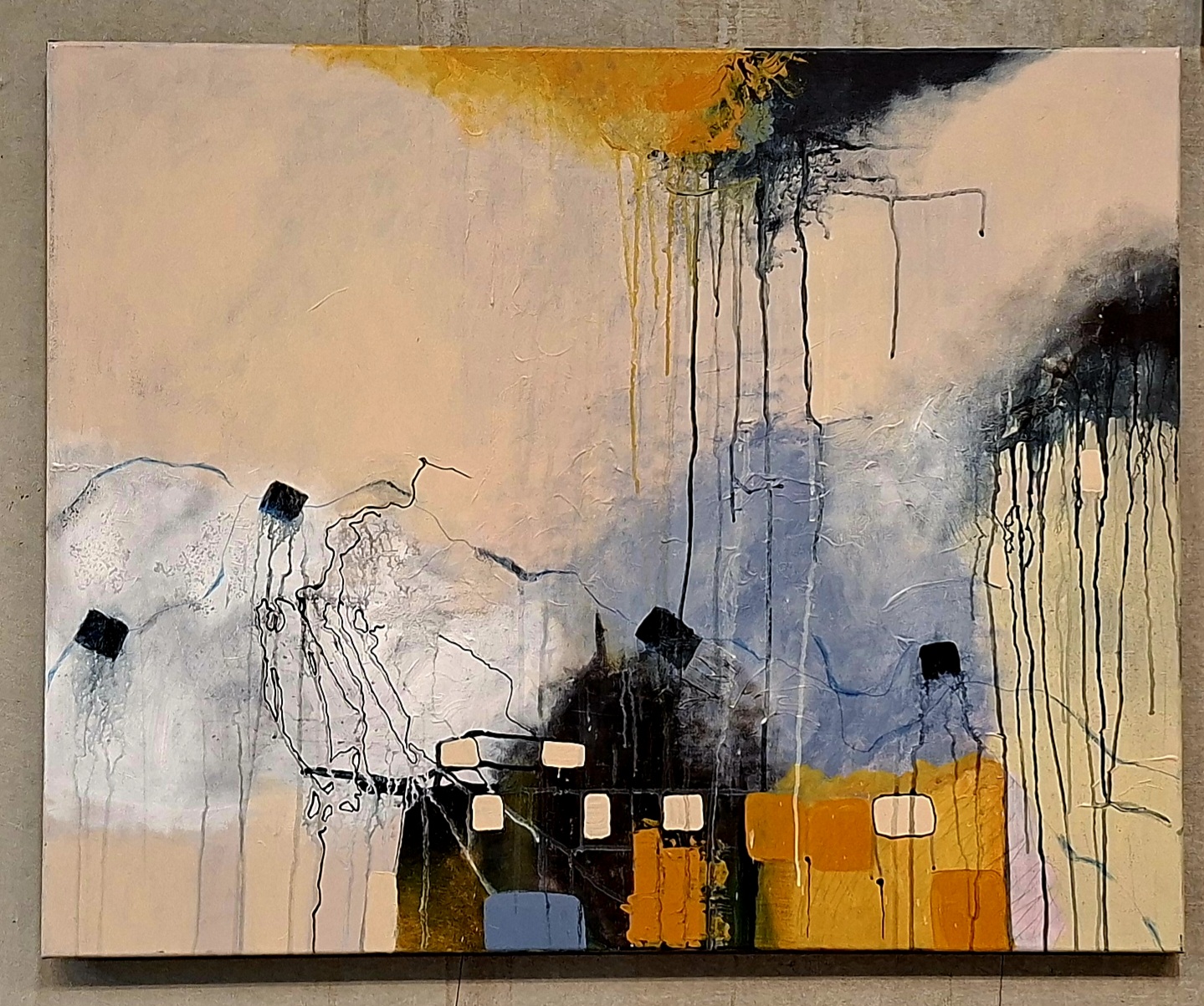 Unikalus ir vienetinis abstraktus paveikslas tapytas akriliniais dažais ant drobės.