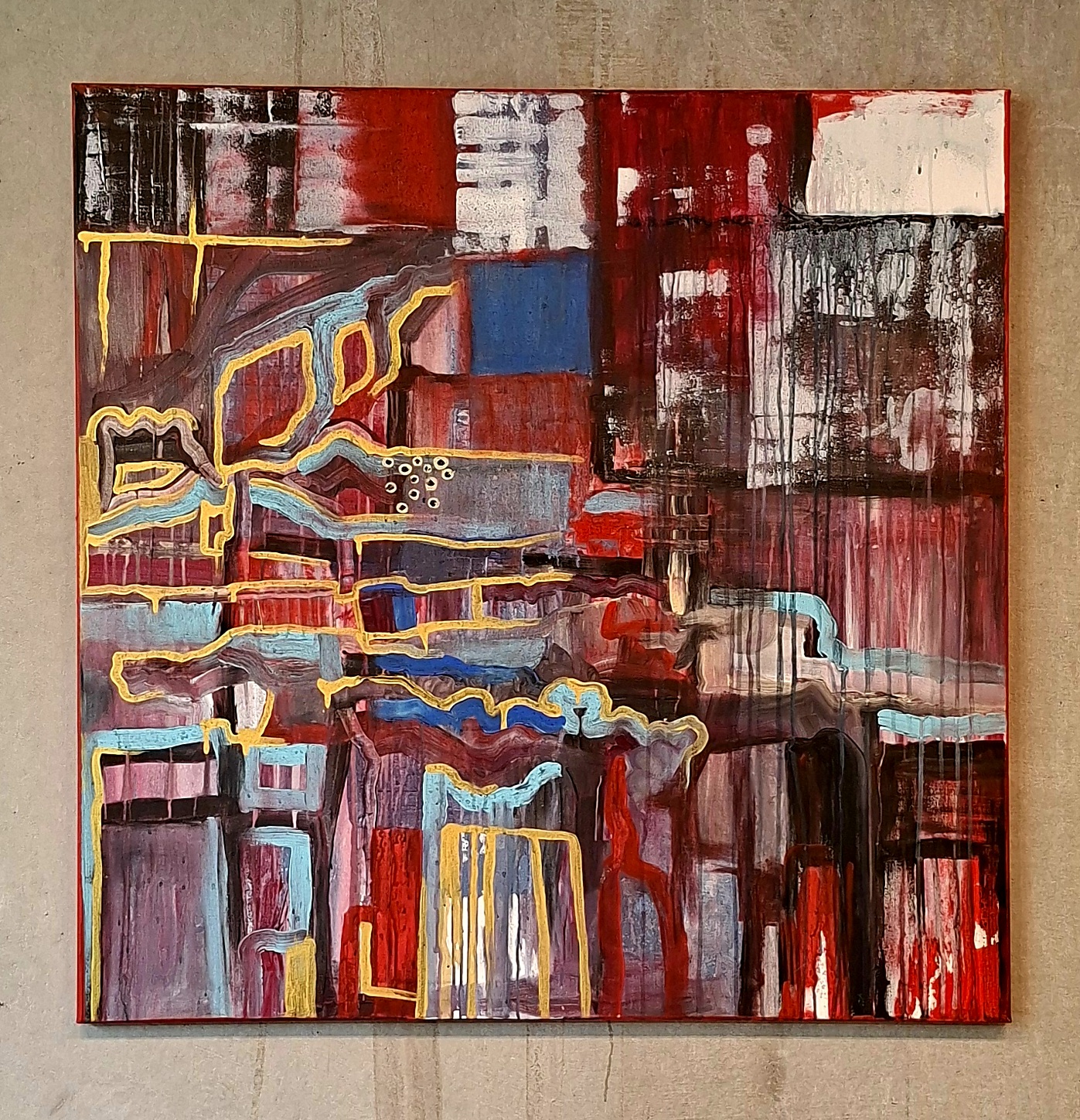 Unikalus ir vienetinis abstraktus paveikslas tapytas akriliniais dažais ant drobės.