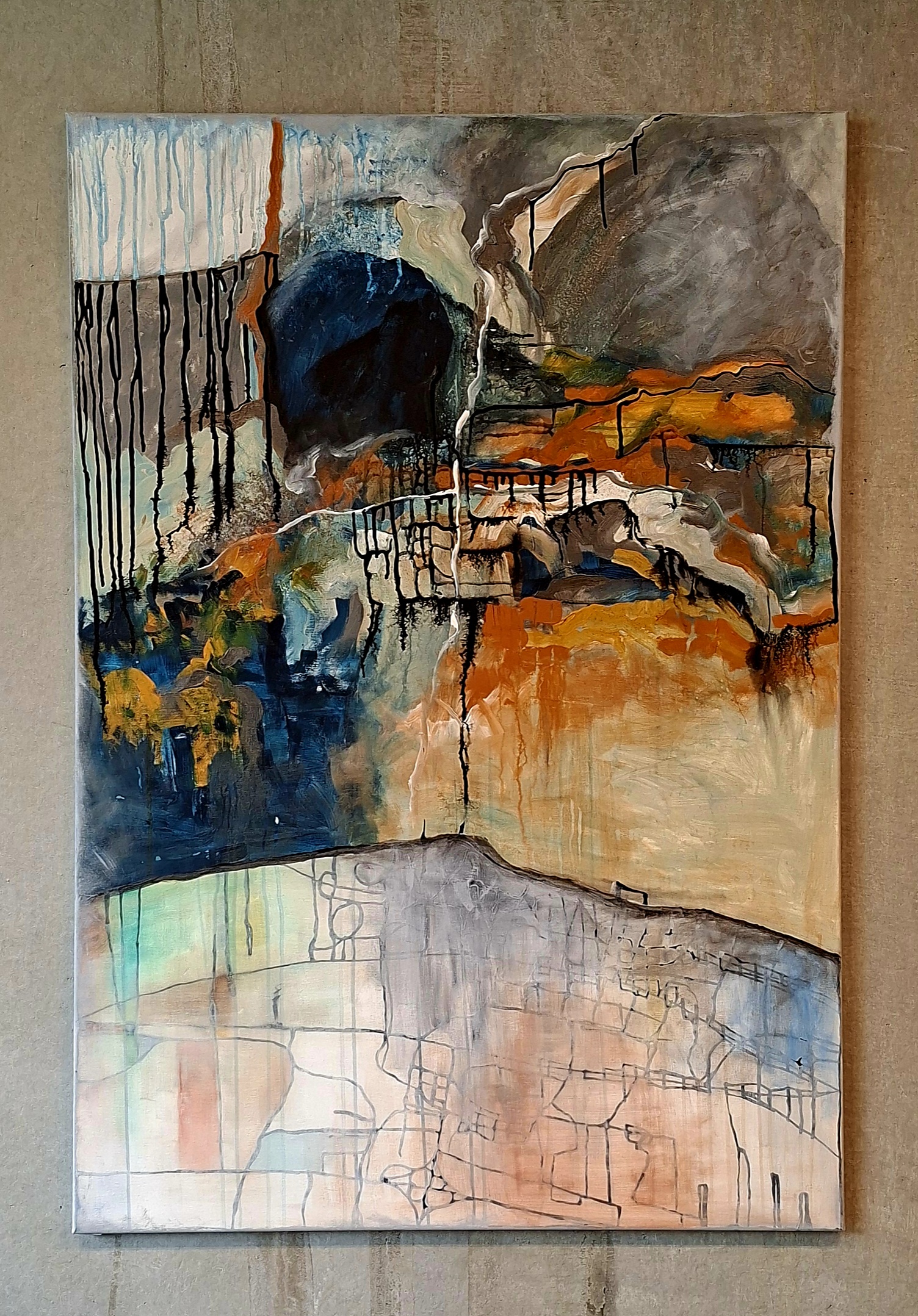 Unikalus ir vienetinis abstraktus paveikslas tapytas akriliniais dažais ant drobės.
